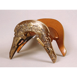 室町時代の名工・大坪道禅作とされる鞍橋に、蜂須賀重喜の命で桃葉が蒔絵を仕直した作品。立体感あふれる蒔絵で、阿波鳴門の渦潮の奇観が見事に表される。