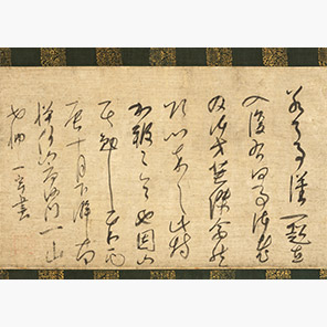 中国僧の一山一寧が、京都・南禅寺の住持をつとめていた際、日本僧の固山一鞏に与えた一幅。一山は、より一層修行に励むようにと、固山を鼓舞した。流れるようによどみなく書かれた、見応えのある草書である。