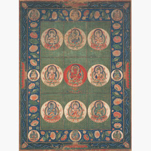 Mandala(マンダラ)とはサンスクリット語で〈真髄・本質を得る〉ことを意味し、密教が説く信仰世界を視覚的に表したものを指します。日本において「曼荼羅」の語は、密教の曼荼羅のみならず、浄土を描いた図絵、さらに神仏習合思想に基づく絵図に至るまで、信仰世界を意味する絵画に広く使われています。