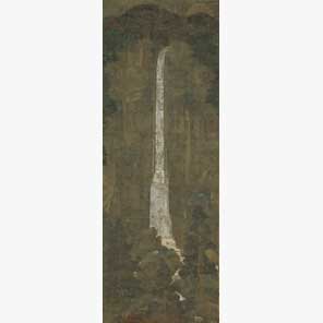 大正6年(1917)市場に出たこの仏教絵画を初代嘉一郎は落札した。一筋の瀧の姿に、自然への畏敬の念が込められた名品。