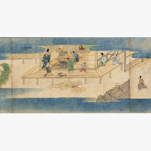 物語は、古くから絵に描かれ、楽しまれました。たとえば、伊勢物語の存在がはじめて文献上に知られるのは源氏物語のなかですが、そこにおいて伊勢物語はすでに絵巻として登場します。もちろん源氏物語も、成立後まもなく絵に描かれ始めたと考えられています。また、中世まではもっぱら絵巻や冊子、色紙といった小画面に描かれた物語絵は、近世になると大画面の屏風にも描かれるようになり、物語が室内を彩りました。
