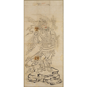 仏教世界を守護する四天王のうち、北方を監視するのが多聞天の任務である。単独で表す場合は毘沙門天とよばれる。筋肉の隆起を誇張し、目を大きく表し、周囲に睨みをきかせる表情である。