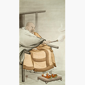 臨済宗の開祖・臨済義玄が問答の際に一喝する場面を描いた、橋本雅邦の傑作。狩野派の筆法を基本としながらも、繊細な陰影による立体表現は西洋画から学んでいる。