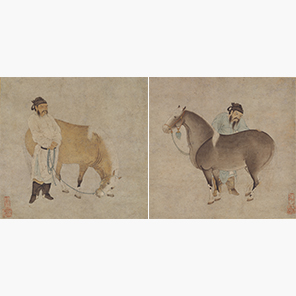 馬とその世話をする男性を、繊細な線と淡彩で表した対幅。中国では異民族の姿がよく描かれた。本作は祥啓が中国画から学んだ成果が最もよく発揮された作品で、代表作の1つである。
