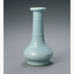 竹子花入とは、頸部と胴部にめぐらせた条線を筍の節に見立てた日本での呼称。均整のとれたかたちと釉色の美しさは、竹子花入の中でも屈指の名品。