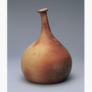 重量感のある胴からすらりと伸びた首が傾いでいるのは、故意とも偶然ともいわれる。個性的なかたちと土の魅力をダイレクトに味わえる焼き締めの肌とが相まって、独特の力強さを発している。
