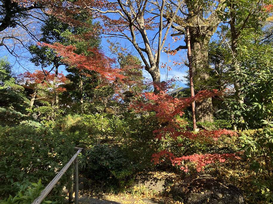 南に池を望む弘仁亭は明治末に建てられた書院茶室を移築し、四畳半の無事庵が添っています。