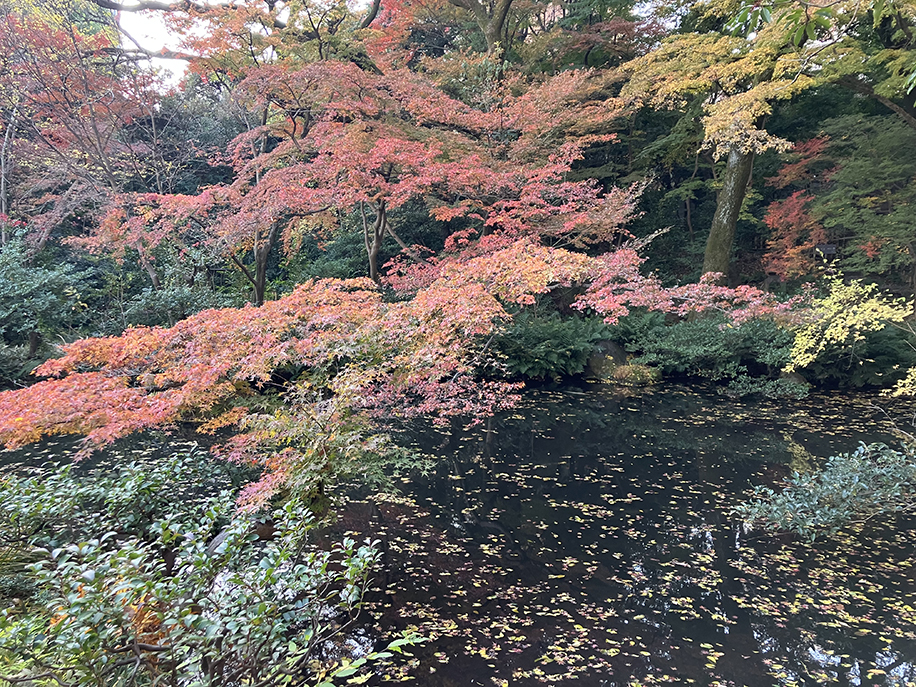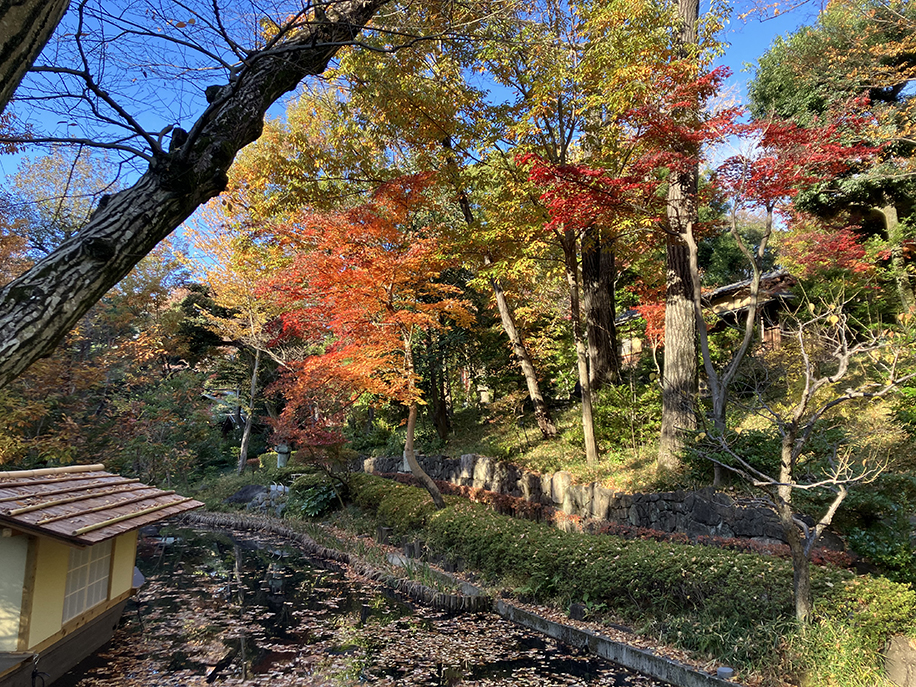 斑鳩庵は、江戸末期に本所に建てられた茶室が益田克徳邸に移築され、さらに昭和30年に根津美術館へ移築されたものです。清渓亭はこれに付属します。